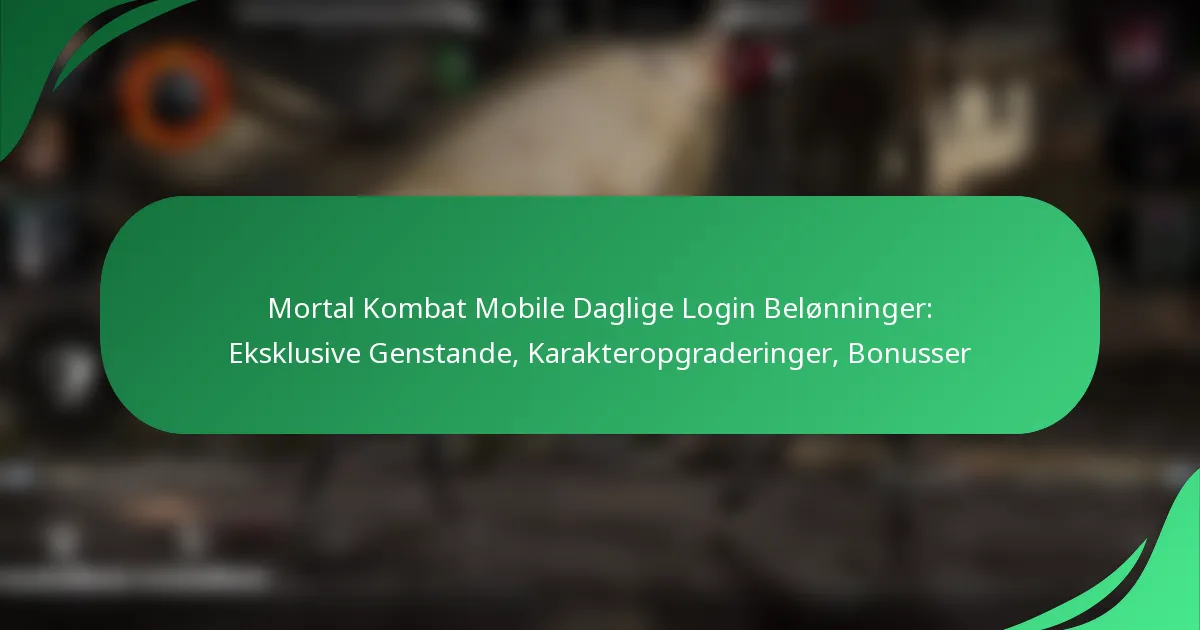 Mortal Kombat Mobile’s daglige login-belønninger giver spillere en chance for at tjene værdifulde genstande og bonusser ved blot at logge ind hver dag. Disse belønninger kan betydeligt forbedre gameplayet gennem eksklusive genstande, karakteropgraderinger og yderligere bonusser, hvilket gør konsekvent deltagelse gavnlig. Ved at etablere en regelmæssig login-rutine og fokusere på belønninger med høj værdi kan spillere låse op for kraftfulde karakterer og forbedre deres samlede spilleoplevelse.