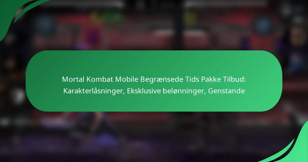Mortal Kombat Mobile Limited-Time Pack Tilbud er særlige kampagner, der giver spillerne mulighed for at låse op for unikke karakterer, eksklusive belønninger og værdifulde genstande i en begrænset periode. Disse pakker er designet til at forbedre spilleoplevelsen ved at give spillerne adgang til indhold, der måske ikke er tilgængeligt gennem almindeligt gameplay.